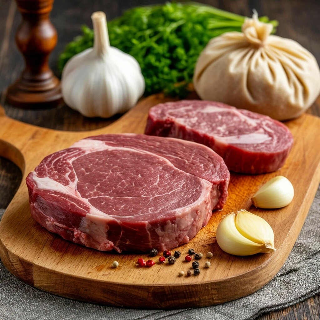 - Баранина или конина (возможно использование говядины) — 1-1,5 кг (лучше выбирать мясо на кости: ребра, лопатку, грудинку)
