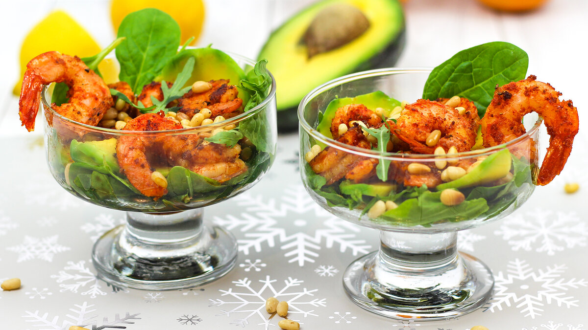 Этот удивительный салат с креветками и авокадо готов к подаче! Порадуйте своих близких оригинальным блюдом на новогоднем столе!
