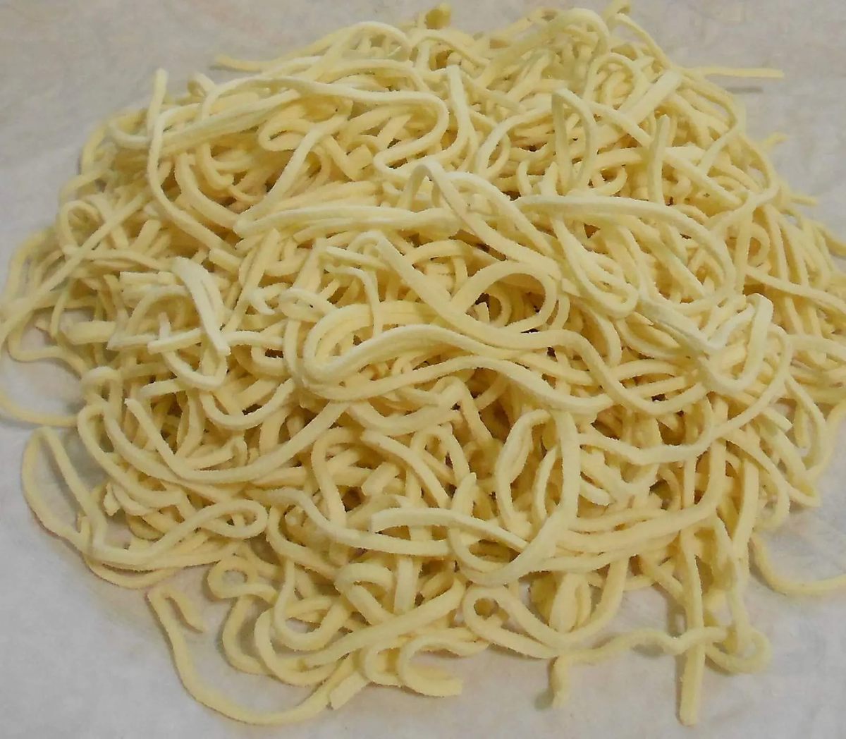 Нарезанную лапшу слегка присыпьте мукой и оставьте на столе для сушки, можно использовать пергамент или газету. Хорошо высушенная лапша может храниться так же, как и обычные макароны.