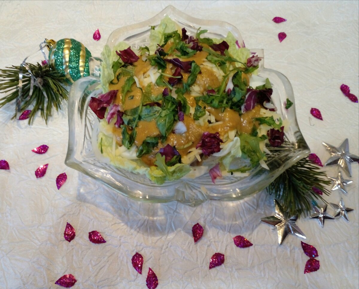 Представляем вашему вниманию восхитительный салат, который просто создан для любого стола. Главная изюминка — это не просто замена майонезу, а особый густой соус, который придаст блюду неповторимый вкус. Приготовление не займет много времени, а результат точно впечатлит!