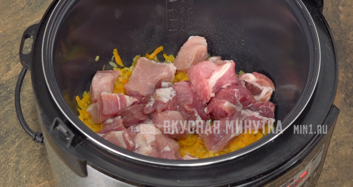 Включите режим "Жарка" и налейте немного растительного масла в чашу мультиварки. Тщательно обжарьте лук и морковь, чтобы они стали мягкими и ароматными. Затем добавьте мясо — выбор здесь широчайший! Свинина, говядина, курица, а иногда даже микс из нескольких видов мяса или копчености обеспечат многообразие вкусов.