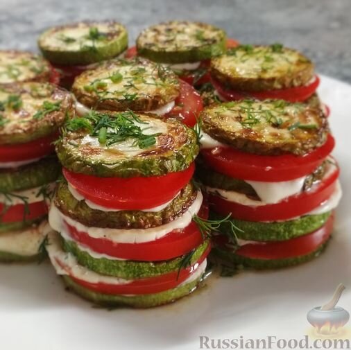 Яркие закуски из кабачков и помидоров также найдут своё место на летнем столе. Кружочки кабачков, помидоров с майонезно-чесночным соусом и свежей зеленью — это настоящее лакомство!