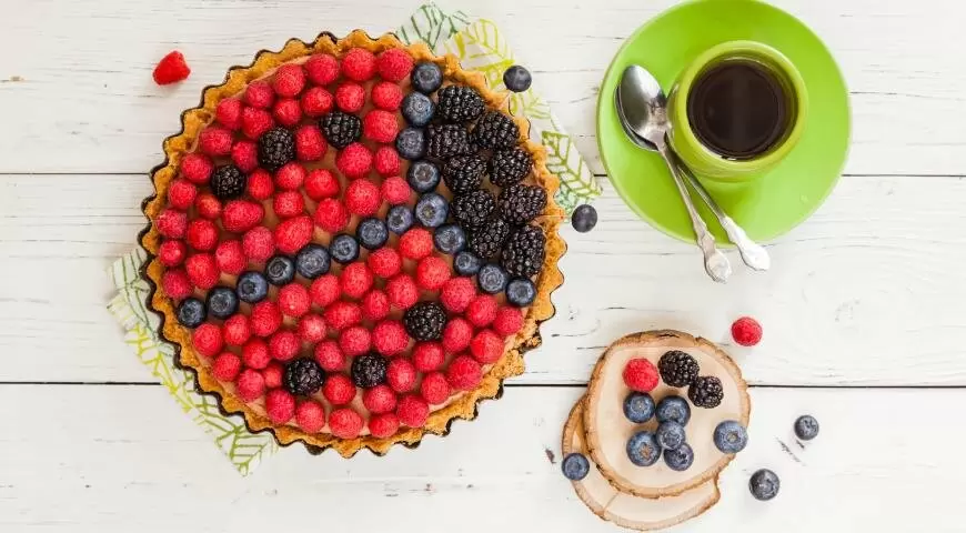 • После охлаждения крема смешайте его со взбитыми сливками. Заполните тарт начинкой и украсьте ягодами.