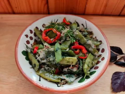 Если вас радуют свежие овощи, начните с их тщательной мойки. Затем наполняйте кастрюлю подсоленной водой и доводите до кипения. За это время фасоль нужно подготовить: сломайте стебли и уберите жесткие волокна по краям, чтобы избежать неприятных ощущений при поедании.