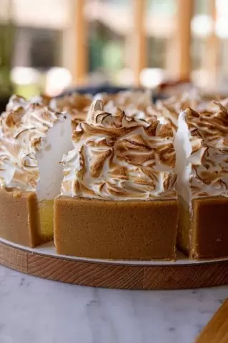 Лимонный чизкейк с итальянской меренгой: Десерт, который отличается легким лимонным бисквитом и бархатистым лимонно-заварным кремом, укрытый восхитительной итальянской меренгой. Один укус перенесет вас на побережье Средиземного моря, напомнив о солнечных днях и теплом песке.
