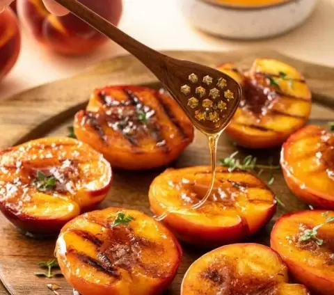 Летние вечера с друзьями не обходятся без шашлыков, и это замечательное сочетание также включает в себя этот восхитительный десерт. Подавайте гриленные персики с шариком ванильного мороженого и каплей меда. Такой десерт не оставит никого равнодушным — и взрослые, и дети с радостью полакомятся этим фруктовым чудом.