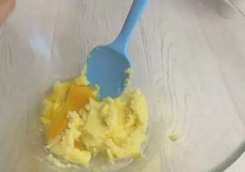 Для начала нужно поместить холодное сливочное масло и сахар в миску, затем добавить яйцо. Все тщательно перемешать до однородной массы.