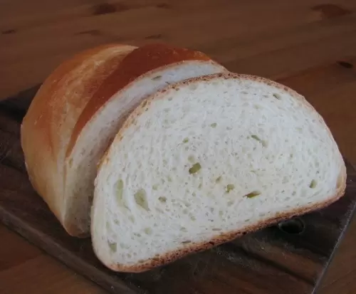 Готовый хлеб следует охладить на решетке, чтобы он не потемнел и не стал влажным. Нарезать его можно не ранее чем через 40-50 минут после выпечки, чтобы он сохранил всю свою текстуру и аромат.