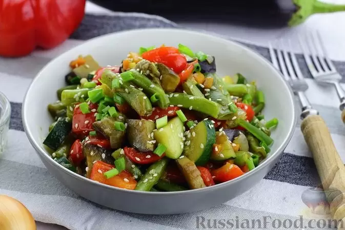 Овощное блюдо с баклажанами и стручковой фасолью — простой, но оригинальный рецепт. Обжаренная морковь, чеснок и имбирь создают уникальный аромат и делают овощи интересными на вкус.
