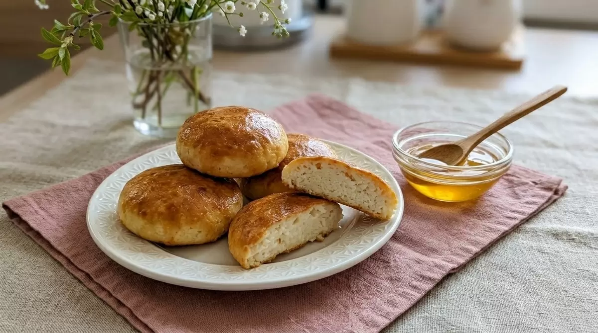 Первый рецепт отличается простотой и минимализмом. Вам не понадобятся ни масло, ни разрыхлитель, ни сахар. Всего четыре ингредиента: творог, яйцо, мягкая мука и крахмал. Благодаря равномерному нагреву в холодной духовке, булочки получаются идеально поднятыми и блестящими.