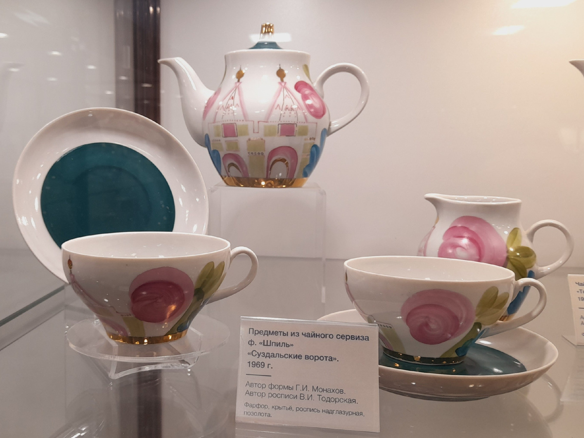 Сервиз 'Шпиль' стал примером соединения традиционного русского искусства и современного дизайна. Его величественные формы и декоративные росписи, выполненные лучшими художниками — Веры Тодорской, Зои Фёдоровой и другими, подчеркивали изящество и практичность. Каждый экспонат был не просто предметом быта, а настоящим произведением искусства, которое можно гордо выставлять на стол.