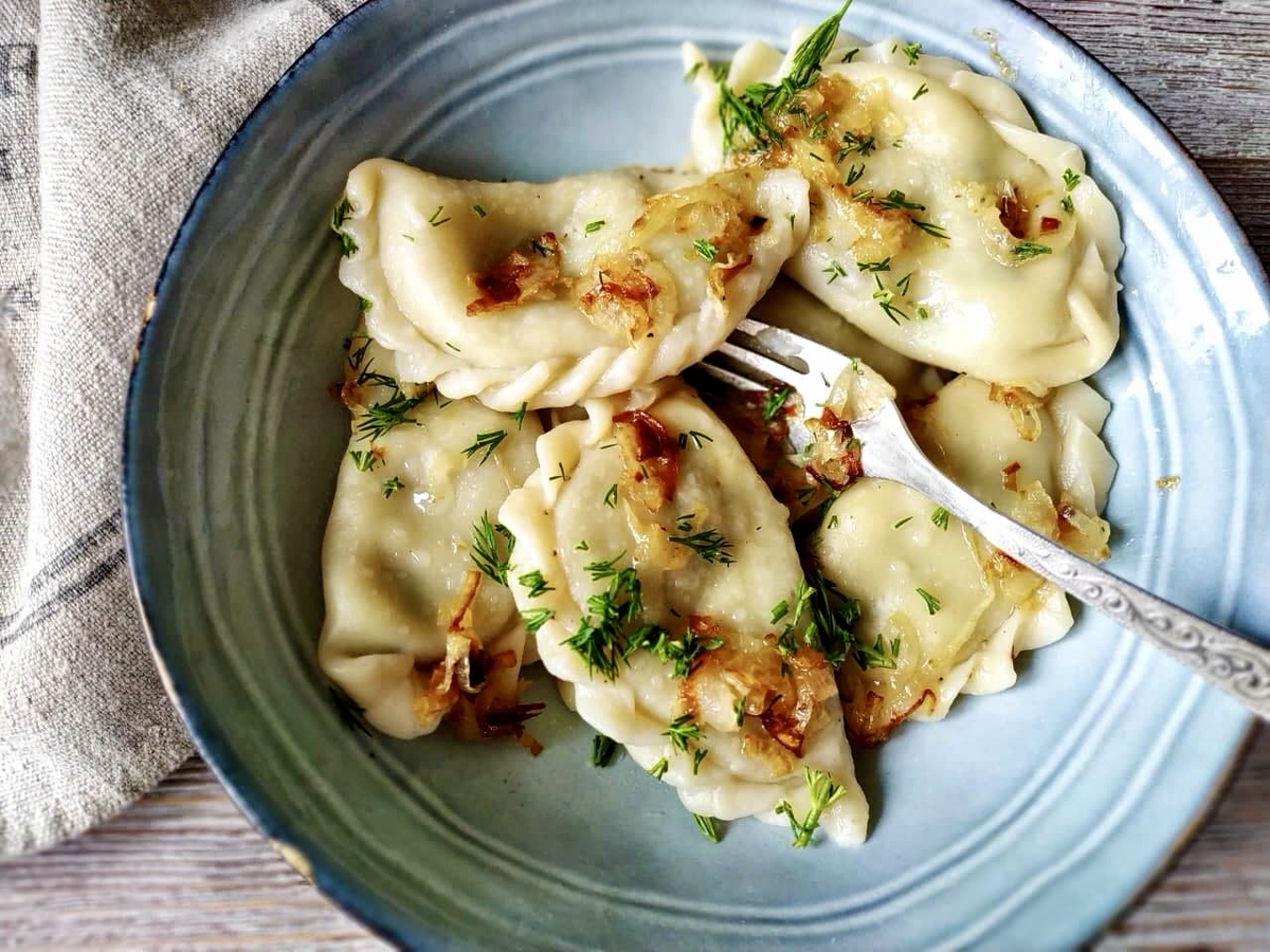 Отварите вареники в кипящей воде на протяжении 3-4 минут: они будут готовы, когда поднимутся на поверхность. После этого обжарьте оставшийся лук на растительном масле и добавьте его к готовым вареникам, чтобы усилить их аромат и вкус.