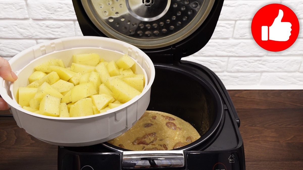 Готовьте на режиме «Тушение» в течение 60 минут или выберите режим «Мультиповар» при температуре 110 °C на 50 минут. Ваше блюдо готово – наслаждайтесь!