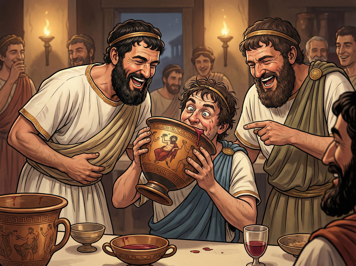 Представьте роскошный античный пир, где мраморные колонны обвиты виноградными лозами, а музыканты играют на лирах. В центре всей этой красоты стоит огромный кратер – сосуд, в котором хозяин разбавляет вино водой. Да, это не шутка: древние греки намеренно пили вино, разбавленное водой, и делали это по весьма разумным причинам.