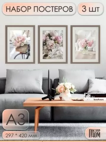Постеры – это отличный способ подчеркнуть индивидуальность и внести нотку весеннего настроения. Набор из трех постеров стоимостью около 200 рублей выполнен из качественной бумаги, и четкость печати позволит им долго радовать глаз и освежать интерьер.