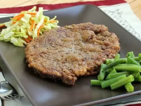 Подавайте венский шницель с легкими гарнирами из свежих или тушеных овощей для полноценного вкусового наслаждения. Приятного аппетита!