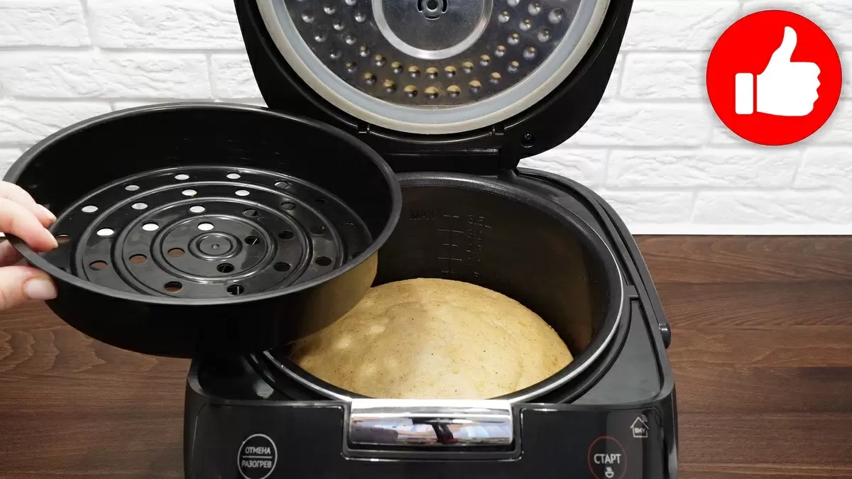 После того как тесто готово, чашу мультиварки следует смазать маслом и вылить в нее получившуюся массу. Пирог выпекается в режиме «Выпечка» около 45 минут, либо, если выбран режим «Мультиповар», при температуре 130 °C около 60 минут. Как только пирог будет готов, его нужно оставить в мультиварке для остывания перед подачей.
