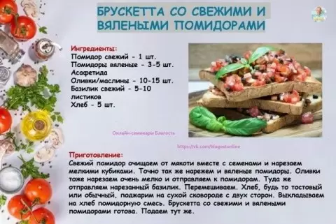 Брускетта — это не просто закуска, это настоящий праздник для гурманов, особенно когда речь идет о свежих и вяленых помидорах. Сочетание этих ингредиентов создает гармонию вкуса, которая приятно удивит даже самых требовательных.