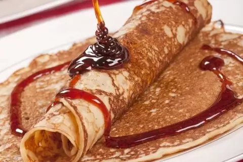 - Блины креп сюзетт: Тонкие, почти прозрачные блины обжариваются на сливочном масле и пропитываются апельсиновым соусом с карамелью, создавая уникальное сочетание сладости и горечи цитрусовых.