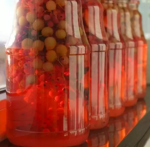 - Красную смородину можно слегка подавить перед заливкой кипятком, чтобы цвет стал более насыщенным.
