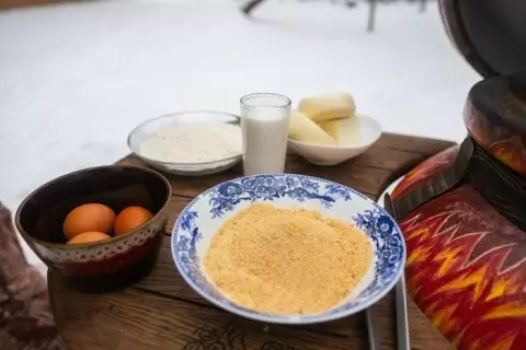 Для жарки используется чугунная сковорода Boniron, которая быстро нагревается на открытом огне тандыра Огненного. Как только тандыр достигнет нужной температуры, сырные палочки будут готовы всего за полминуты.