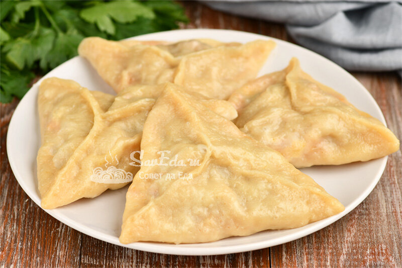После окончания варки, аккуратно при помощи лопаточки извлекаем манты на тарелки. Пергамент не прилипает к тесту, сохраняя насыщенный вкус начинки.
