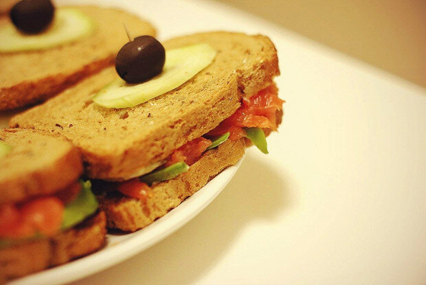 На одну сторону каждого кусочка хлеба намазать приготовленный соус. Затем выложить ломтики авокадо, тонко нарезанный копченый лосось и кружочки огурца.Сверху накрыть оставшимися кусочками хлеба и слегка прижать. Разрезать каждый сэндвич пополам по диагонали.Эти легкие и вкусные сэндвичи отлично подойдут для перекуса или легкого ужина. Делитесь рецептом с друзьями и готовьте вместе!