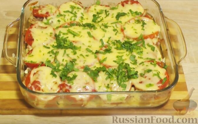 Баклажаны с мясным фаршем и помидорами